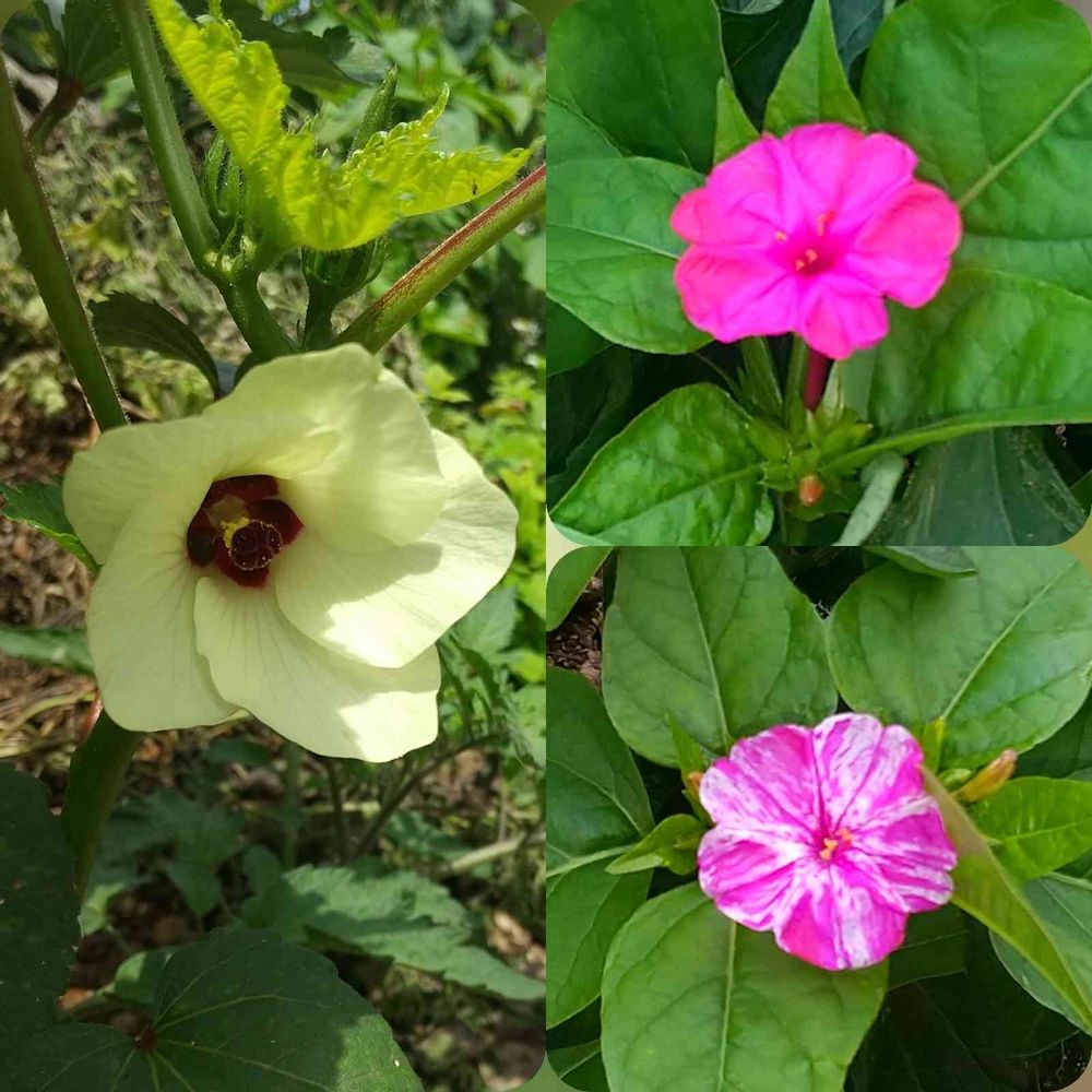 今日、咲いた花💕オクラ、オシロイバナ🌼