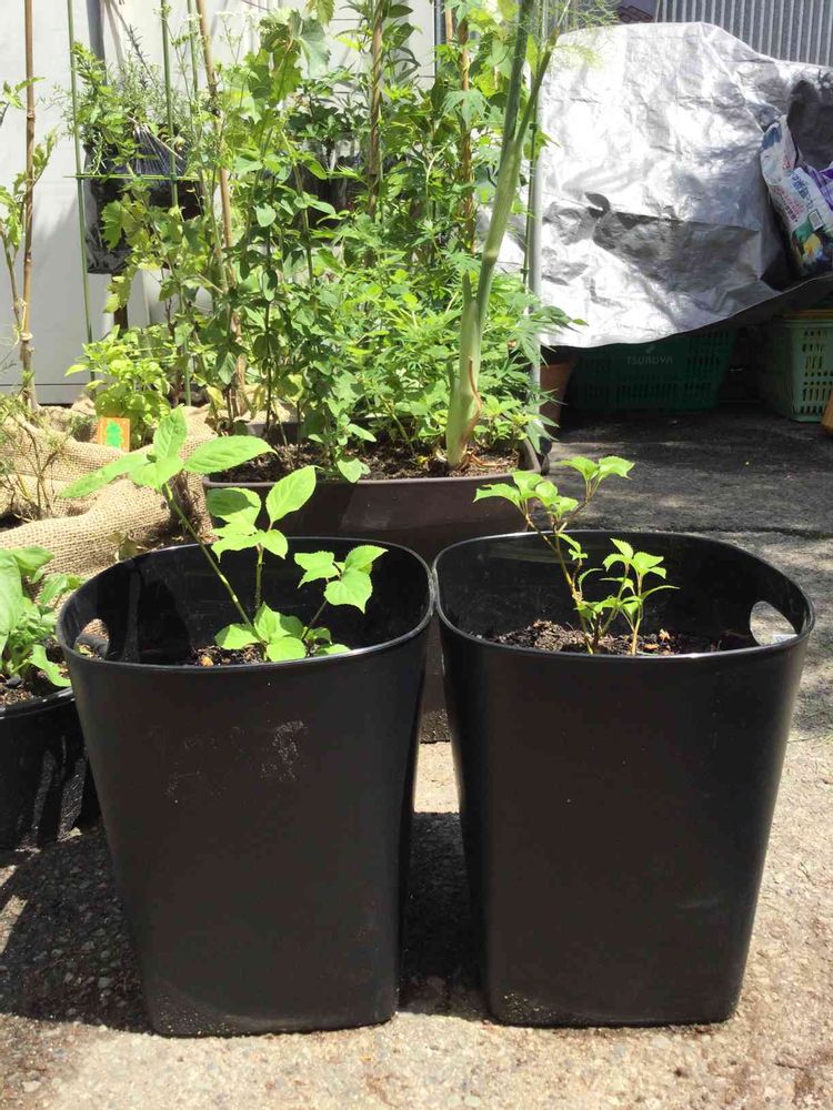 プランターは買わず100均のゴミ箱に穴を開けて。