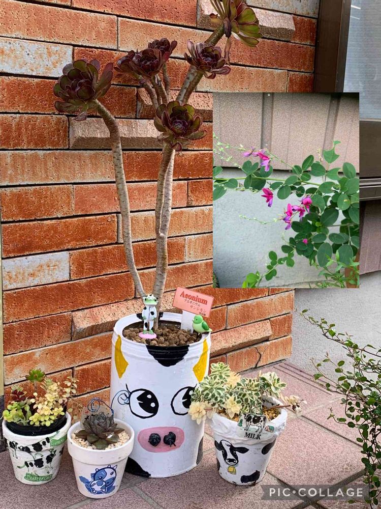 自作の牛🐃リメ鉢にはK.Kちゃんから