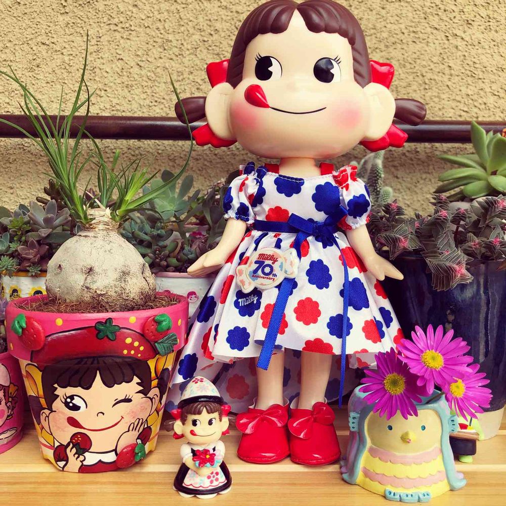 ペコちゃんの70周年記念の人形と👗めちゃめちゃ可愛いですね〜