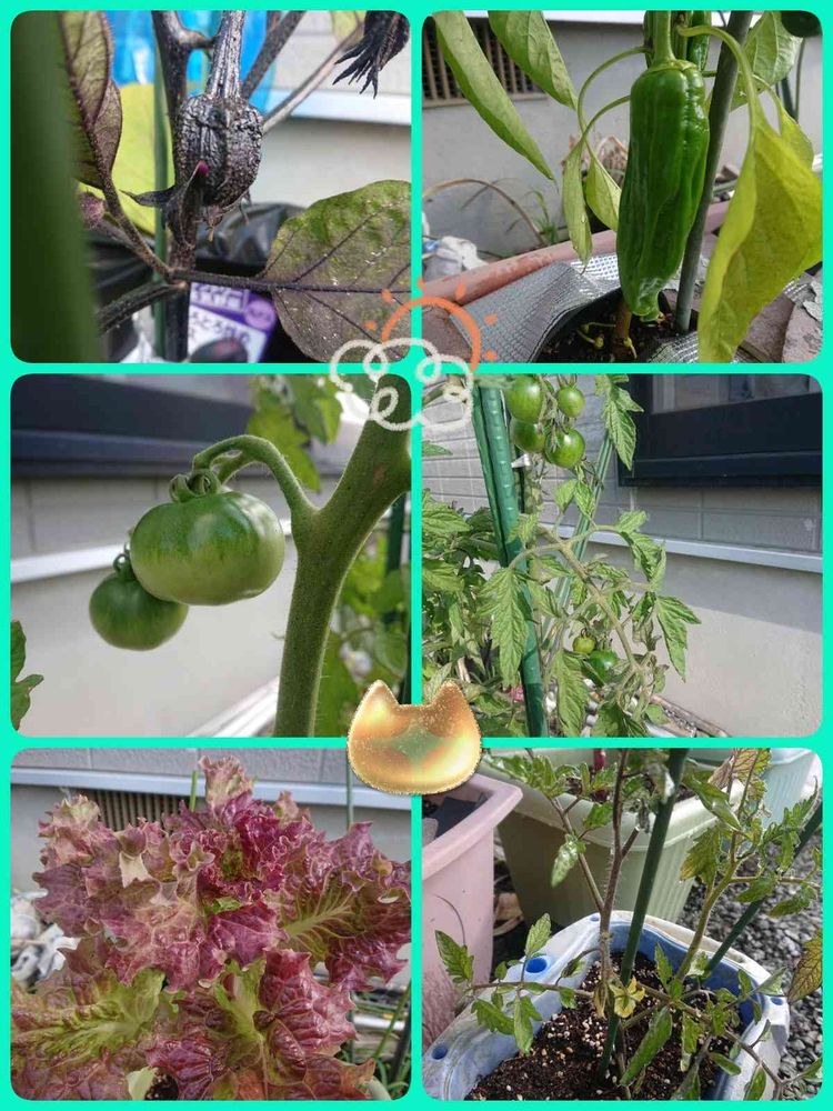 写真撮るの下手だなぁ私… ネモフィラ・こいあじ・レッドオーレ・京みどり・サニーレタス・とろとろ炒め茄子