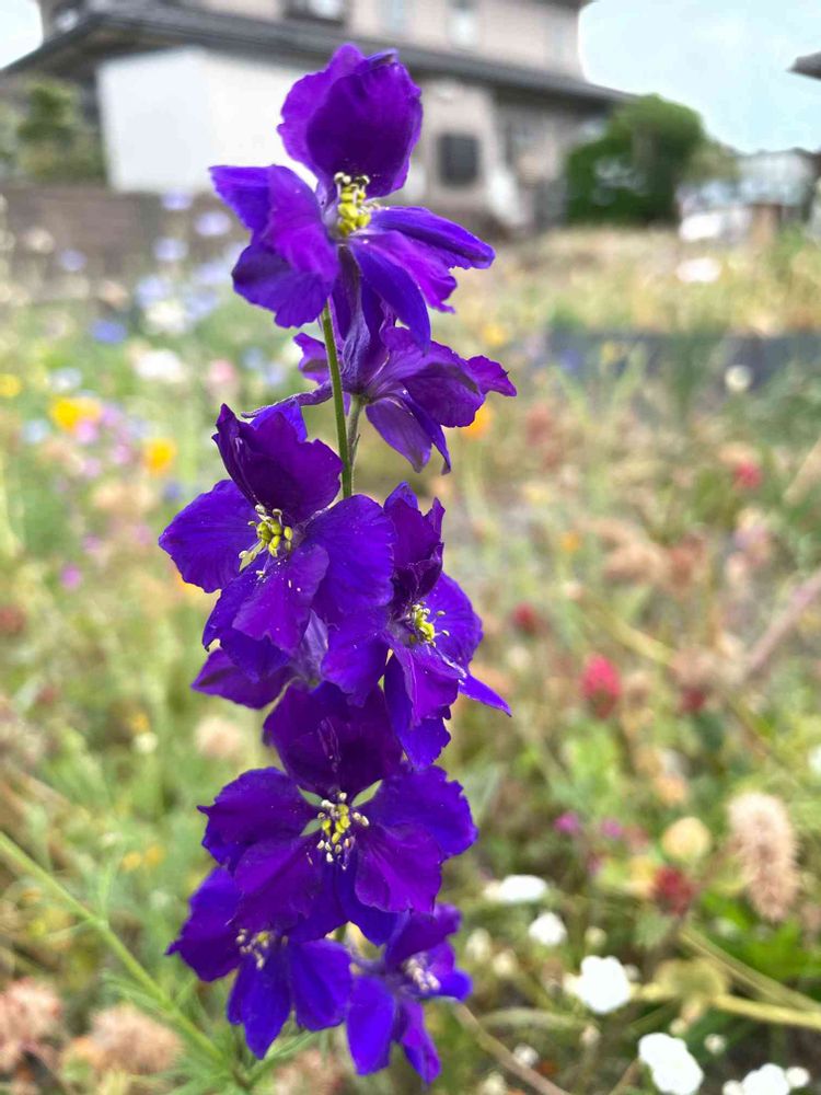 紫色のチドリソウ😊ひょっこりはんだね😂