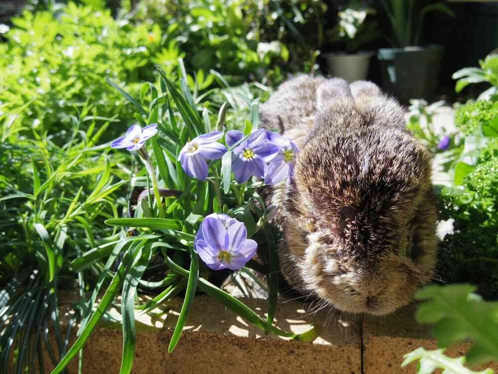 うさぎのむーさんとハナニラ。ハナニラの苗買いました🌼