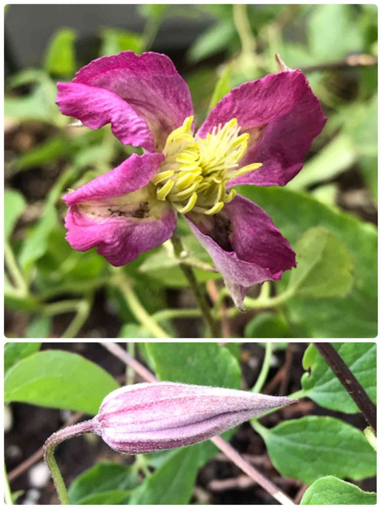 ジェニー・カディック(ビチセラ系)の花が咲きました。蕾もついてます。思ったより小さな花でした。どんどん大きくなってたくさんの花をつけてほしいです。