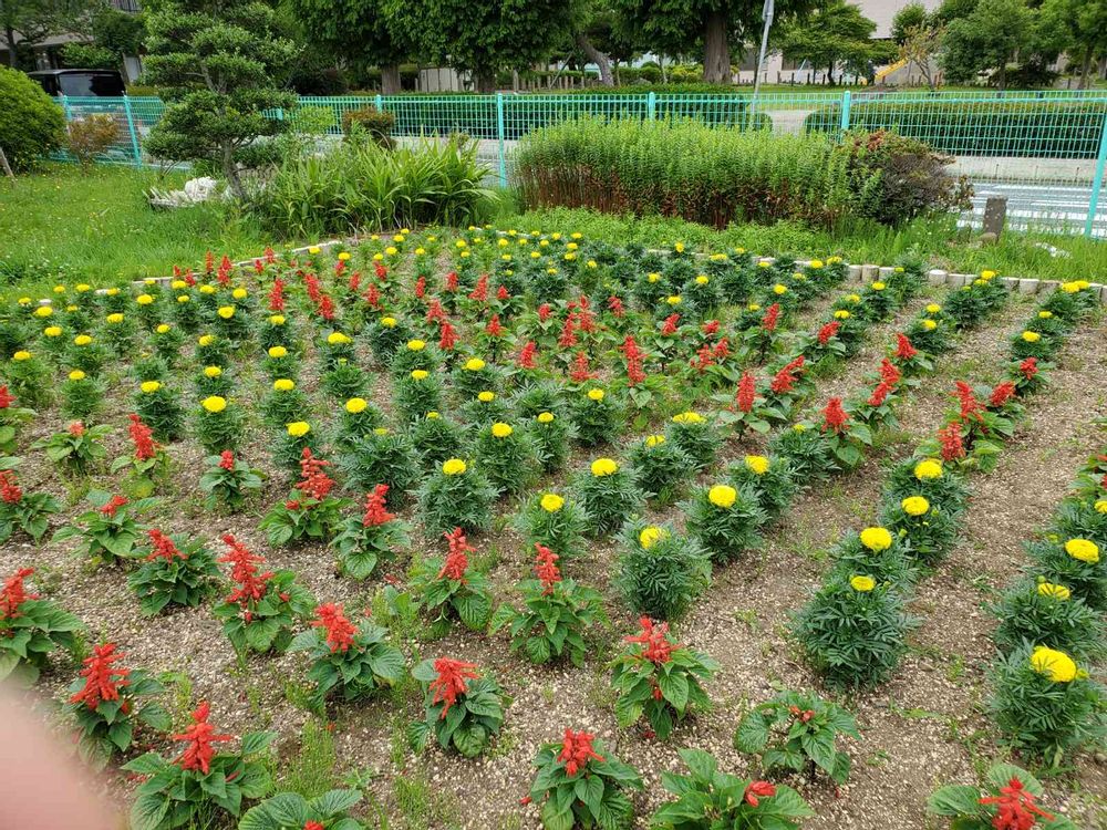 公園のお花、A型の方が植えられたのか😳見事な整列具合‼️