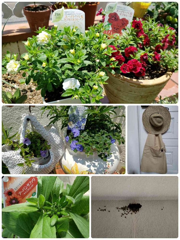 小さな庭,スーパーベル ダブルレッド,スーパートレニア・カタリーナブルーリバーの投稿画像