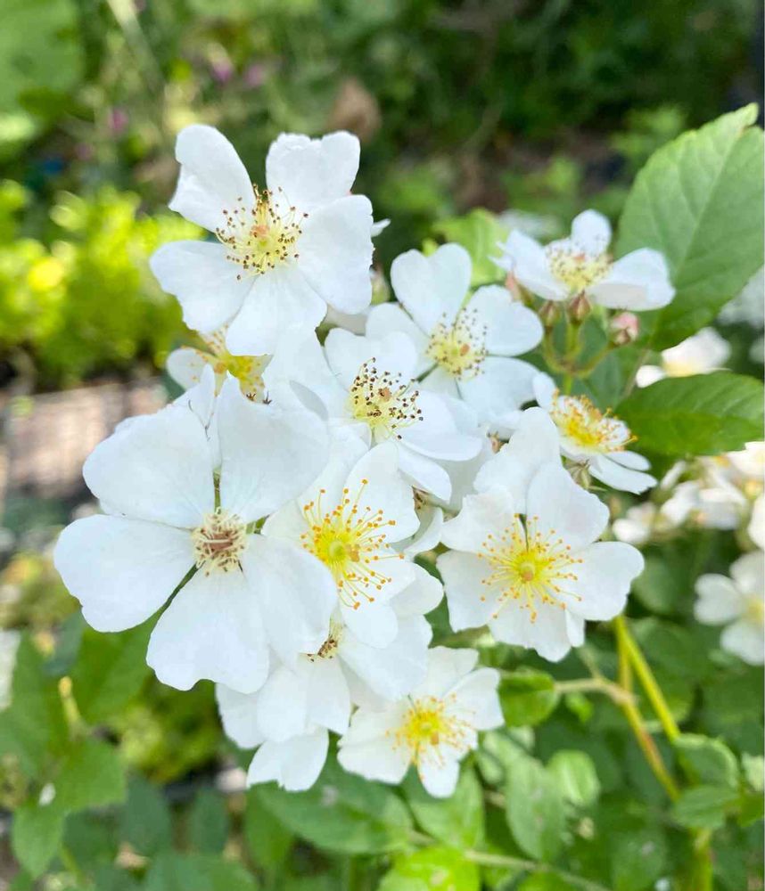 去年から植えてもいないのにトゲトゲの木が…絶対バラだよな…と思ってたらこんな白い花が😅