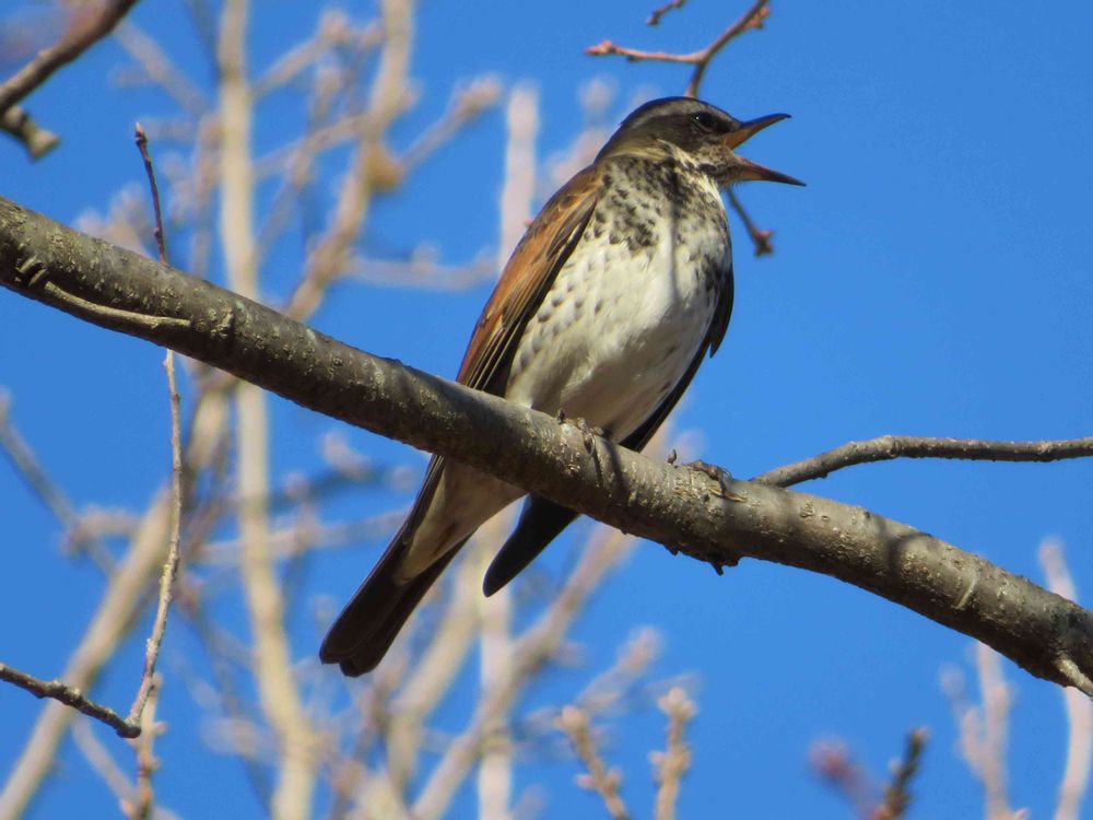 たしかこのツグミ、クヌギの枝にとまった気がするけど・・・・。