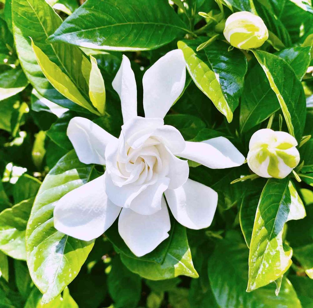 この時期に咲く八重咲きのくちなしにはいくつもの思い出があります。毎年この花とその香りに出会うと、また一年が巡ってきたことを実感します。晴れた空の下ではなく、曇り空が似合う花ですね。この写真の花の開き具合がいちばん好きです。