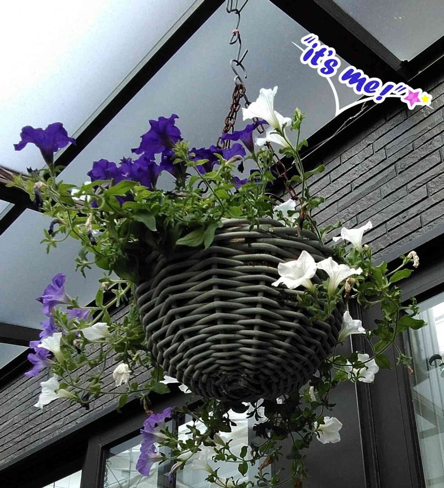 ステキなハンギングバスケットに枝垂れして咲くペチュニアさん素敵ですね〜✨