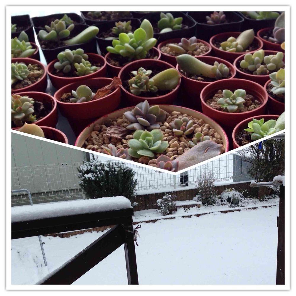 葉挿しっこを室内に入れたのは、発泡スチロールにいれてたからさ、太陽当てるのに蓋をあけると❄️が積もるというね。。。(笑)
