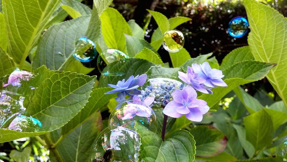 シャボン玉と紫陽花♡