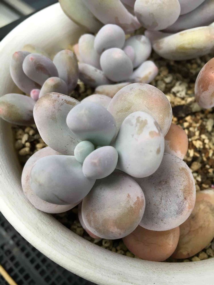 オビフェルム。最初は大福みたいにまん丸な葉っぱだったけど、今は後ろのブルーヘイズと変わらない感じに😳