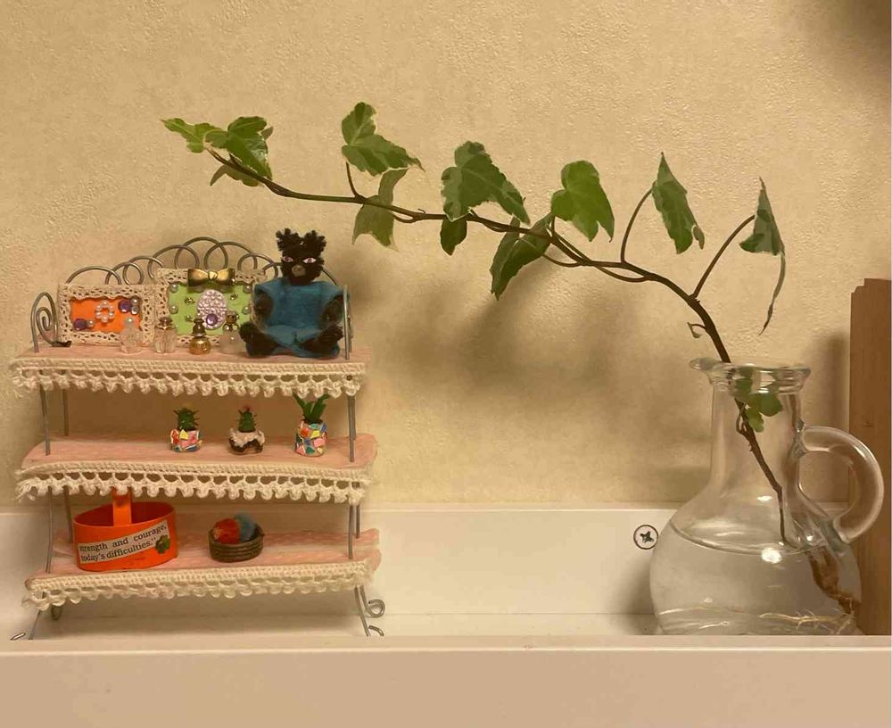 お庭でモリモリになっていたセイヨウキヅタのホワイトを一本チョキっと切ってお部屋に持ってきました🪴生えてきた根も長くなってきました