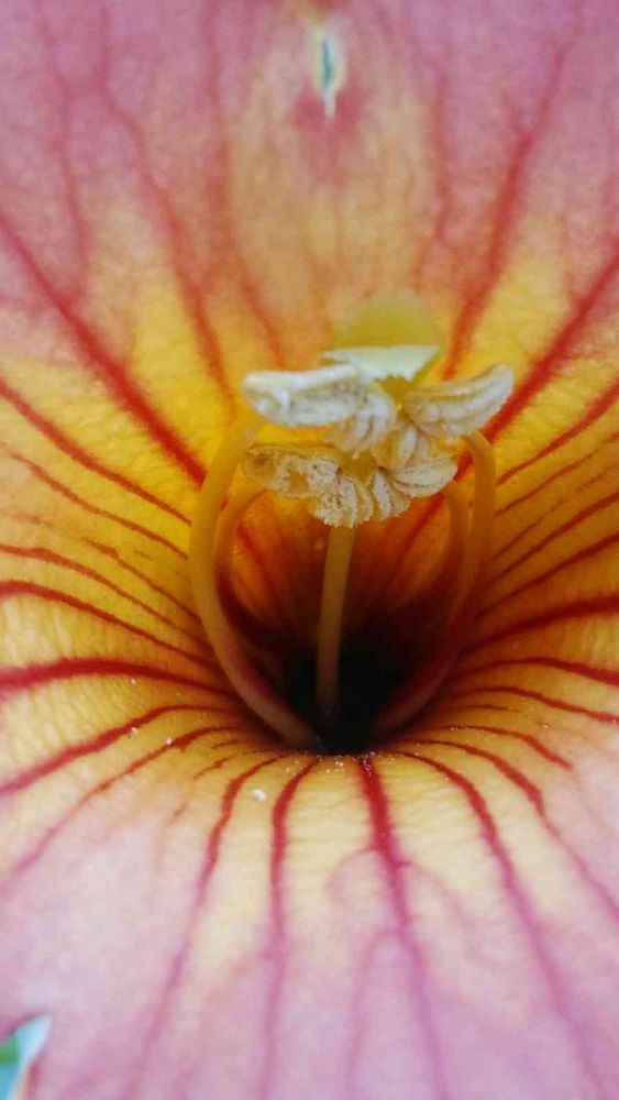 雌蕊に向かって、雄蕊が傾いてるのが、ノウゼンカズラの特徴ですが、その割には、結実率(種ができる割合)は 決して良くないって聞きますね…