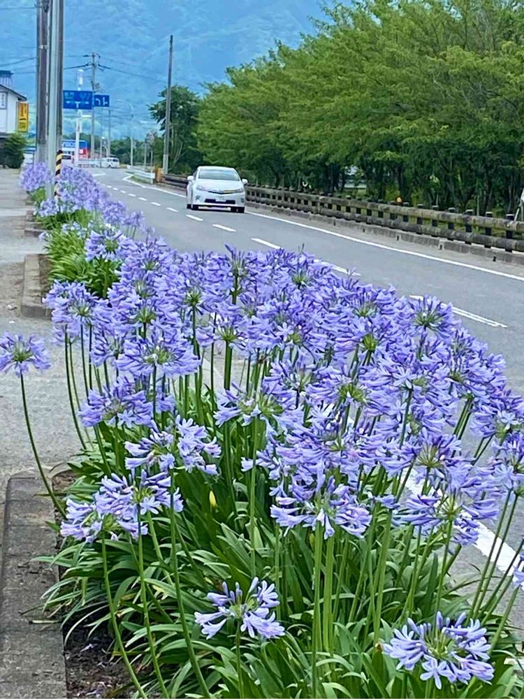 丹精込めたブルーの道、爽やかで、美しい道です。ドライバーの皆さんも、スピードゆるめて通っていました💕