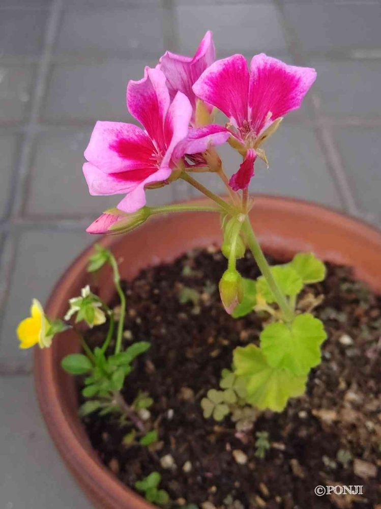 昨年挿し木をしたものに花が咲き、その側では申し訳なさそうに、そっとこぼれ種から花開くビオラさんも😂🤭