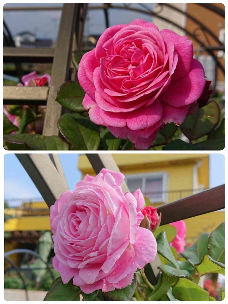 ガゼボの外と中で色がちょっと違って咲いてる~🎵