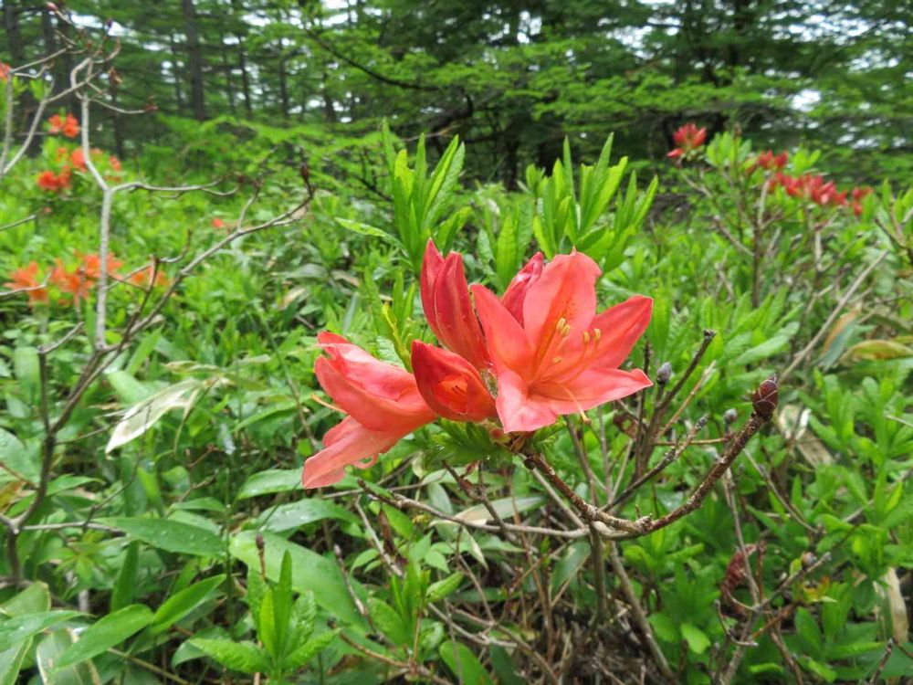 標高の高い湿地近くには鮮やかなオレンジ色のツツジが咲いていました😀