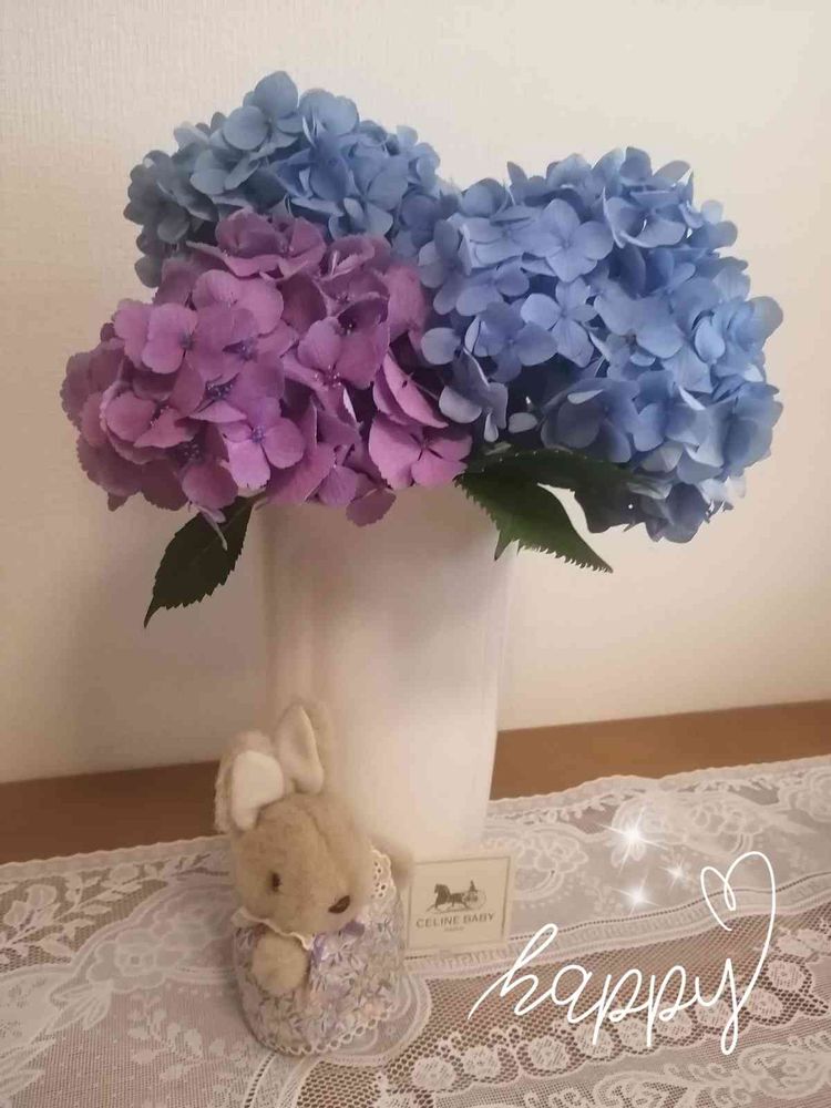 さん♥まだまだ綺麗なのに無造作に刈られてしまうので落ちてた紫陽花拾って来ましたよ🤭😆😁