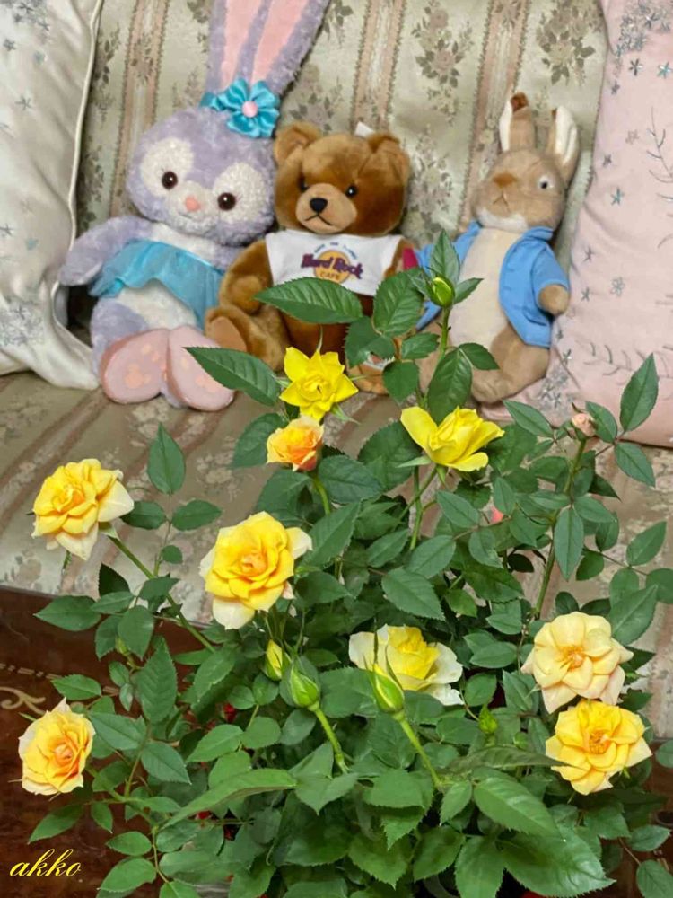 鉢植えのミニバラ ヘナとマルス🌼満開です‼️