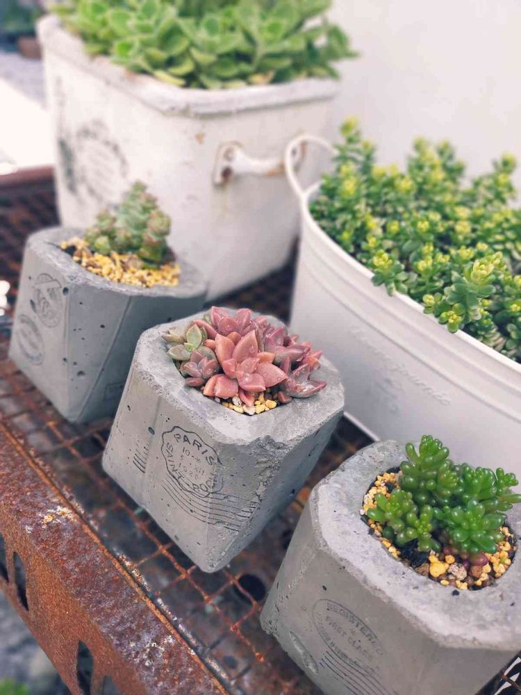 ちょっと前に作ったコンクリ鉢に植えてみました🌱