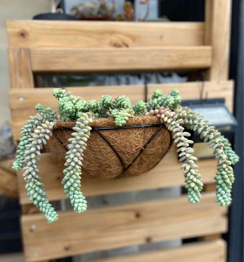 鉢植えだったけど先端が地面に突き出したのでハンキングに植え替えました。