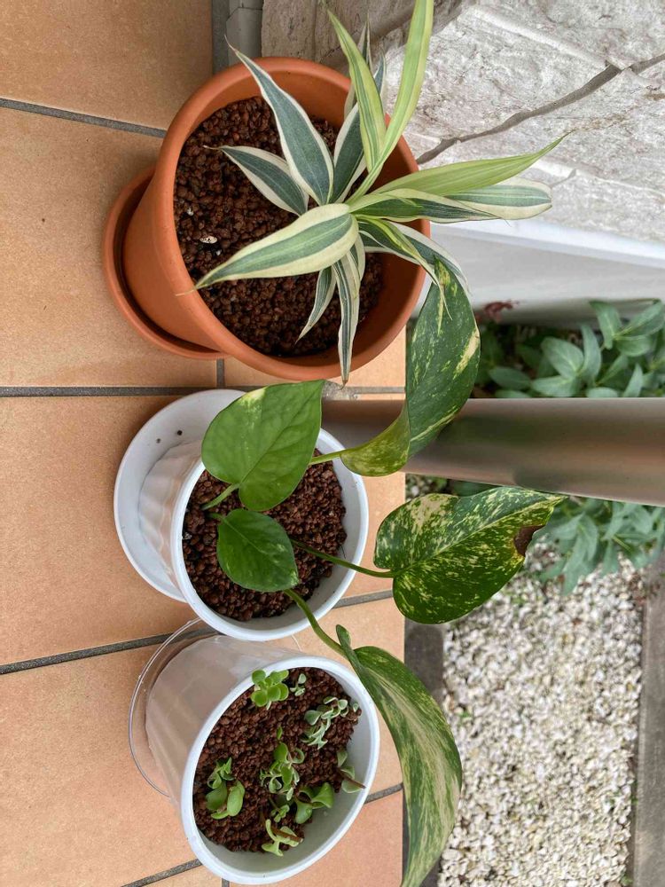 友達からもらった丸葉万年草など鉢植えに🪴虫が出てくるのが怖いからしばらく外に居ていただきます🤗