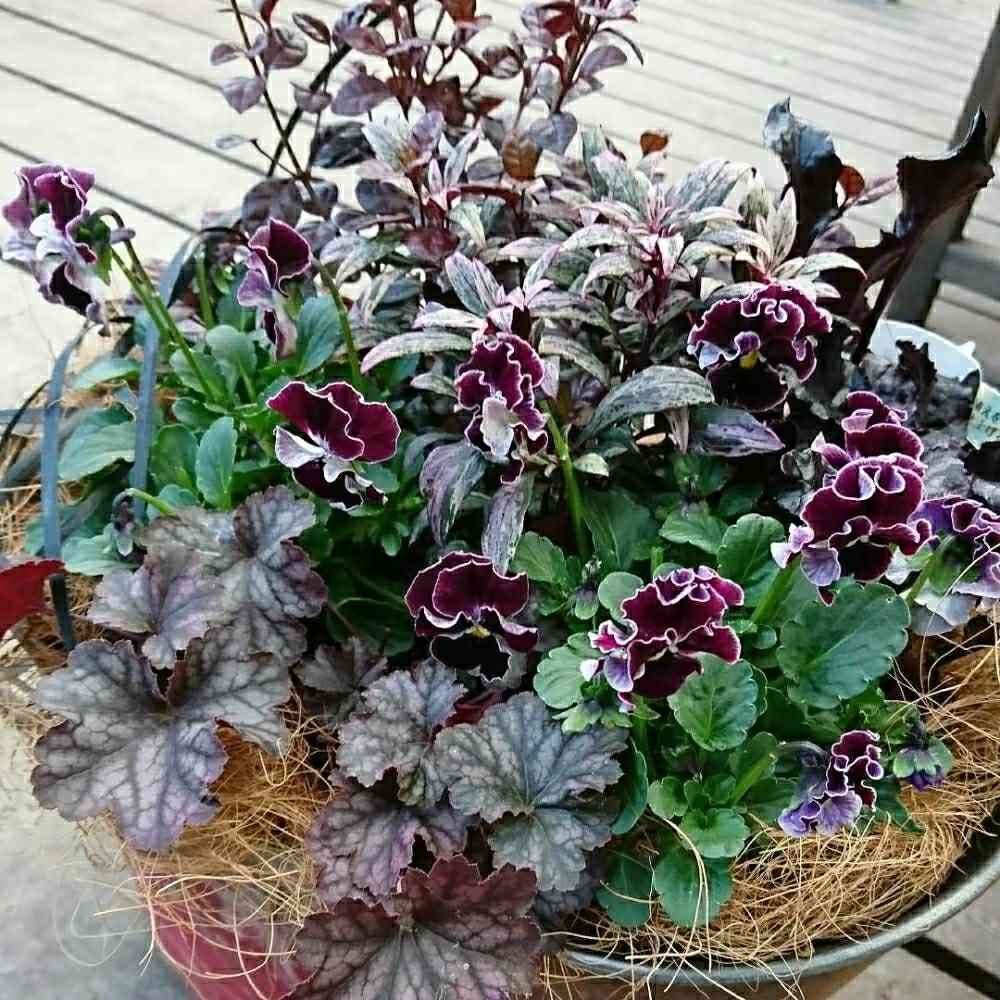 #夢と緑を運ぶ店ホピー #有限会社鈴蘭園#神戸市北区園芸店#ガーデニング#花屋#寄せ植え#夢咲きヴィオラ#ロフォミルタス#キャサリン#キンギョソウ#ブランルージュ#ビーツ#ブルズブラッド#ヒューケラ#ドルチェ・ブラックベリータルト#コクリュウ#花のある暮らし#当店お勧め植物 @ ホピー鈴蘭園