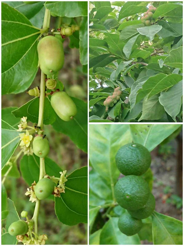 散歩道沿いのナツメとコブシ、我が家のミカン。