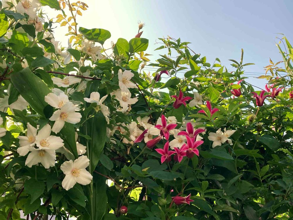 植花夢♪さんの小さな庭,クレマチス グラベティビューティ,バイカウツギ ベルエトワールの投稿画像