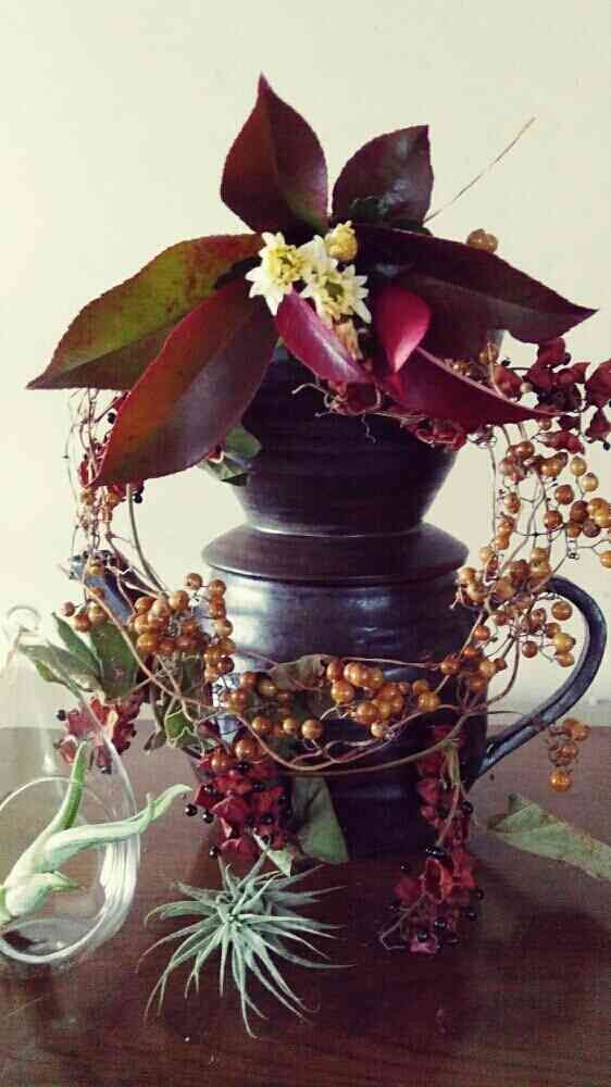 棚の奥にしまってたドリップポット?母が陶芸を習ってたときに作ったものに飾ってみました。認知になって、本人は忘れてるけど、GSに出会ったおかげで利用できました(*^^*)