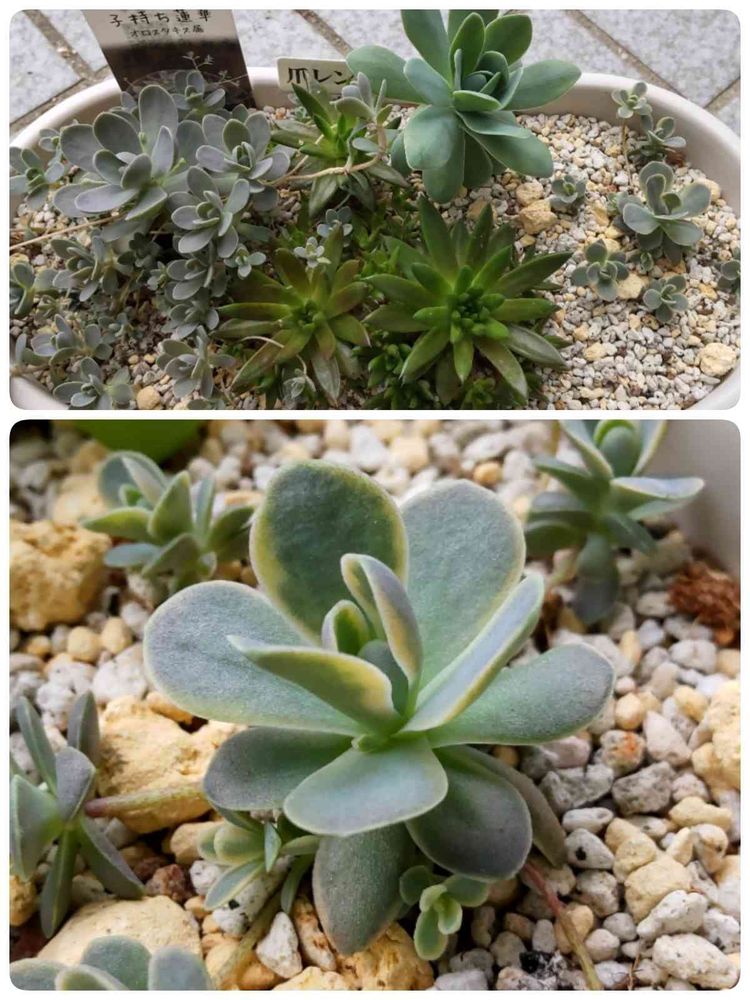 後ろの大きい子は岩蓮華🌱この子の斑入り「富士」にいつかは出会いたい✨