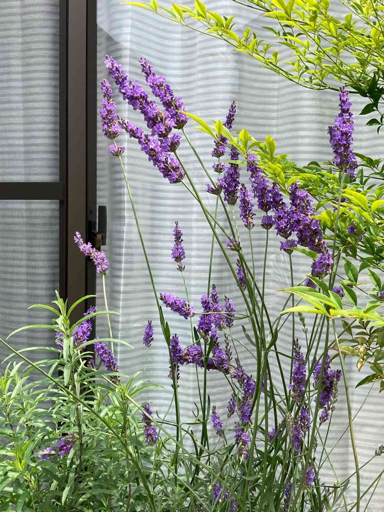 いいよね〜サンルームの前に置いてます‼️カーテンが白だからラベンダーの紫が映えるね〜🤗✨👍