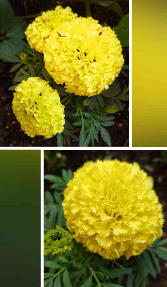 黄色いアフリカンマリーゴールドの花、丸〜くて可愛いです💕