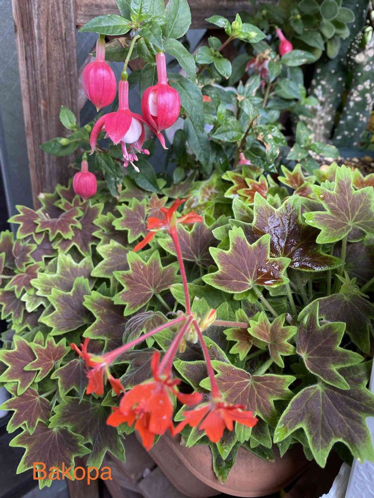 ベランダのフクシアちゃんの🌿🌸お花が咲きました🌿🌸(*'▽'*)🍁紅葉ゼラニウム🍁さんも元気です*\(^o^)/*