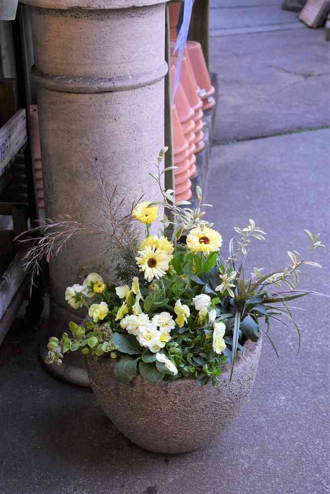 玄関先に明るい寄せ植え