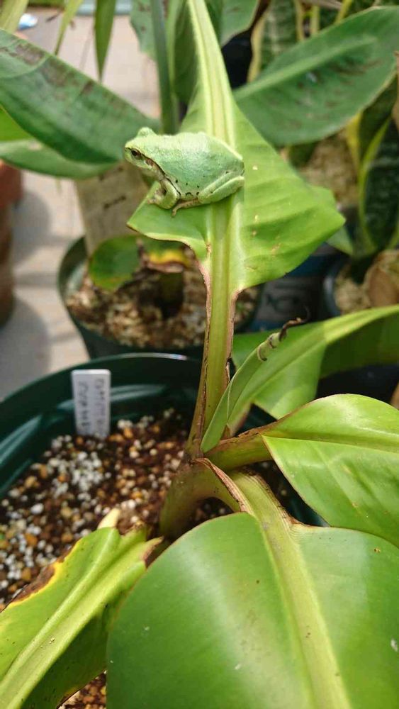 ベランダの何かしらの葉っぱの上にいつもいます🐸✨