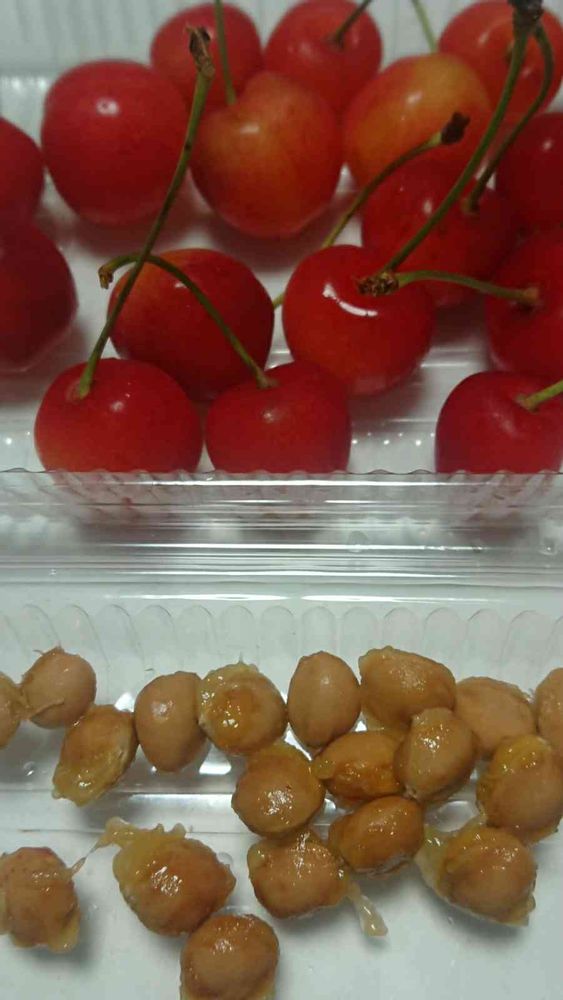 姉からヤマモモの返礼に今年も届きました 山形産さくらんぼ🍒いただきながら種集め 感染してしまった 食べたら蒔く 実生苗育成病さてどうなることやら。🤗💦💨💦