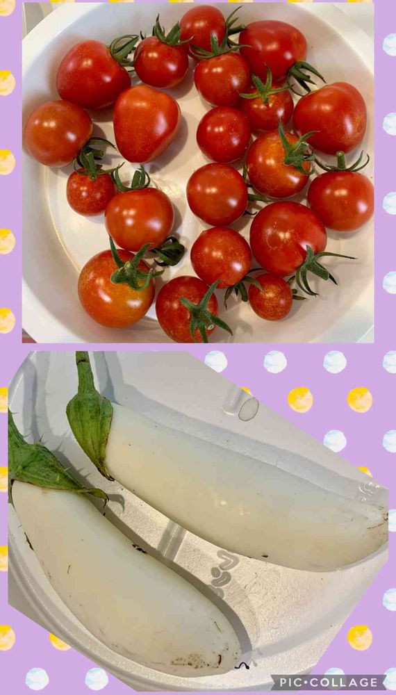 今日お昼からしばらく雨なのでトマト赤くなり初めのものも収穫しました。