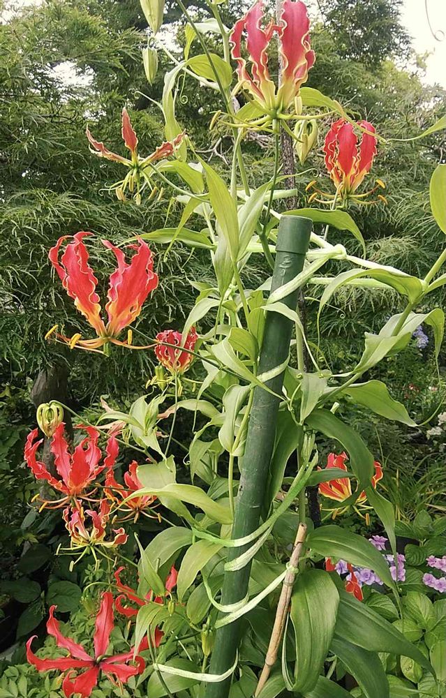 グロリオサ,母の庭いじり,ジャングルの様な実家の庭の投稿画像