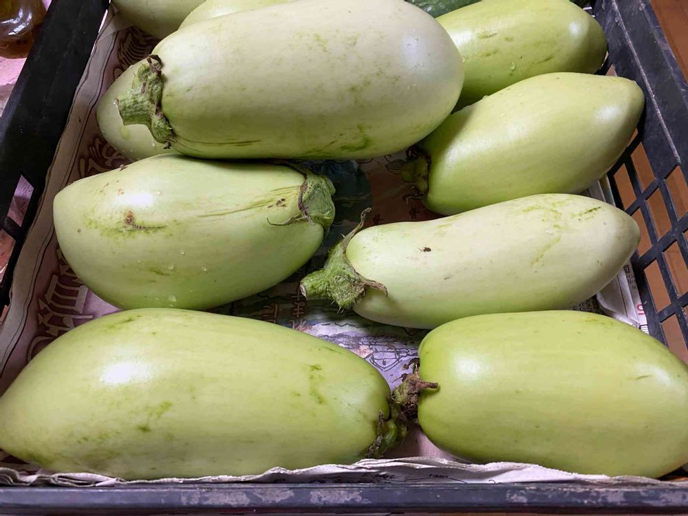 あら、白い茄子?ですか…キミドリの色の茄子は、近所でも見ますが白いのは、珍しいですね🌸そちらの特産品ですか?