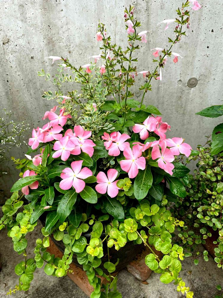 可愛い色の日々草を見つけたので、寄せ植えにしてみました💕