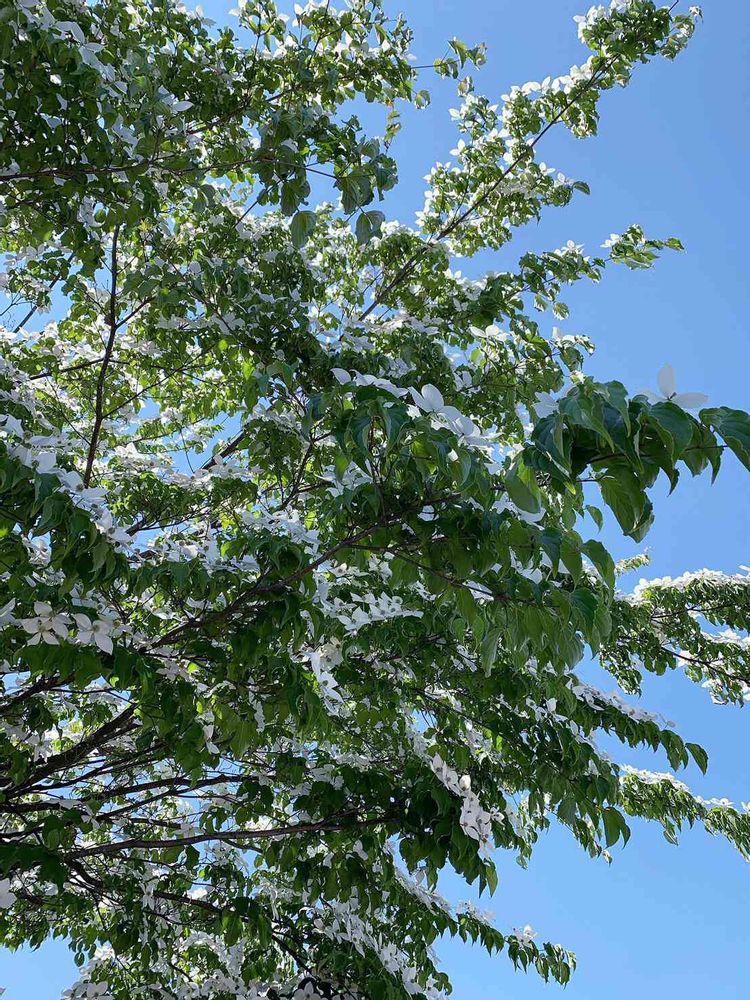 青空に真っ白な綺麗なヤマボウシさん🤍🤍🤍