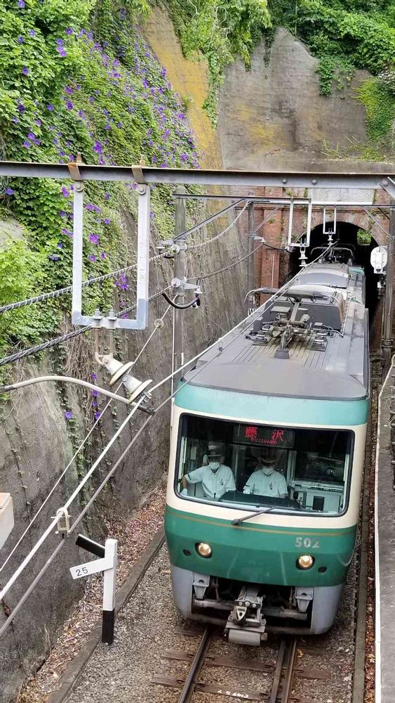 琉球朝顔(たぶん)とトンネルから出てきた江ノ電