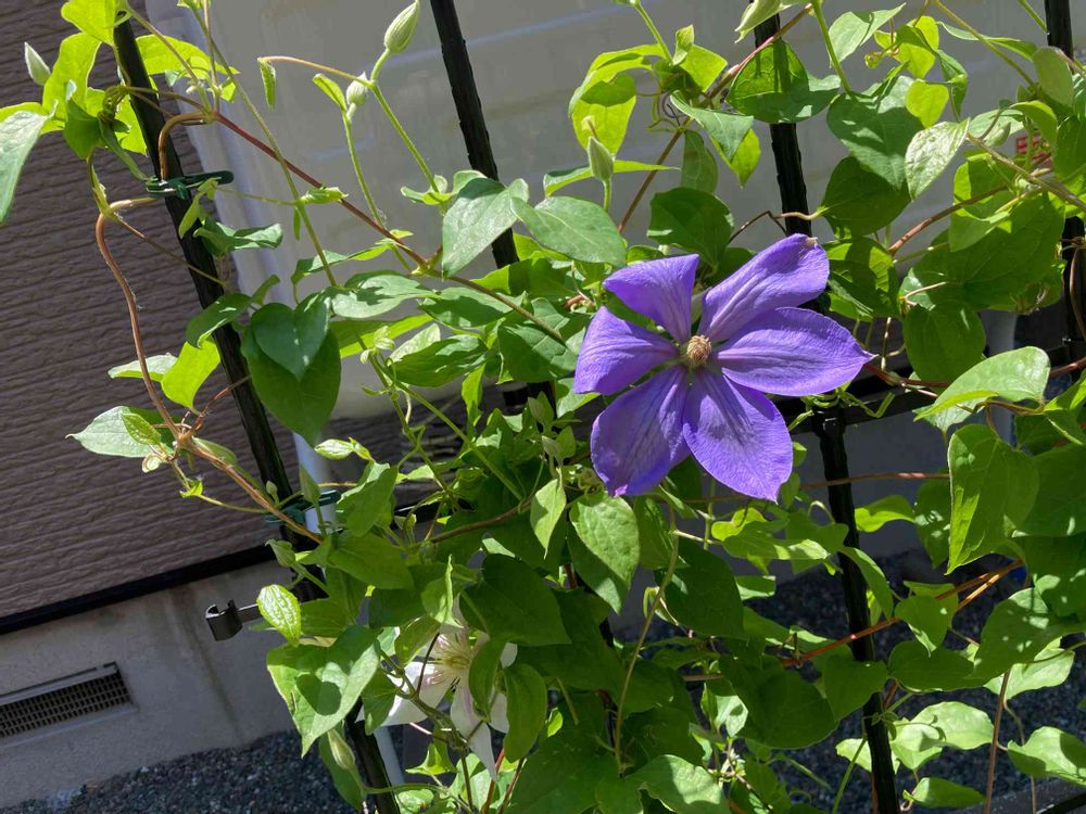 クレマチスのフェンス高さが低いので3っのクレマチスのツルが混ざってあっちコッチなのですが、理想はその中で沢山咲いてくれる事なんだけど、なぁ…