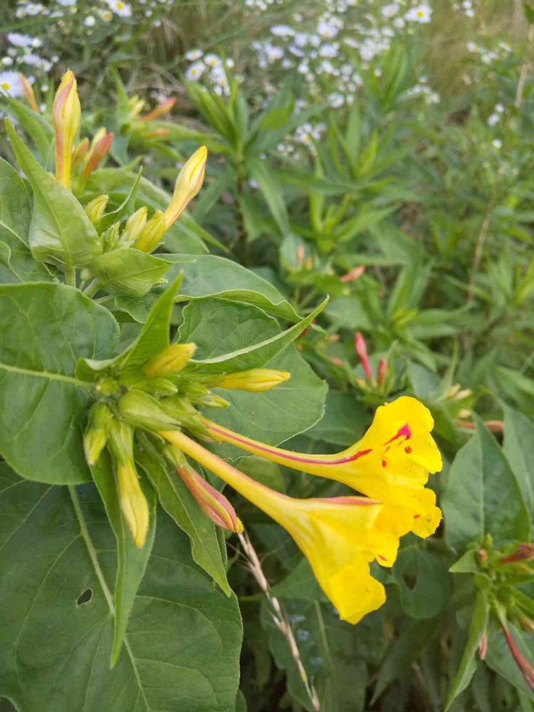 黄色✕赤い花のオシロイバナ見~つけた…新しい場所…🤫に…花のシベは赤!!