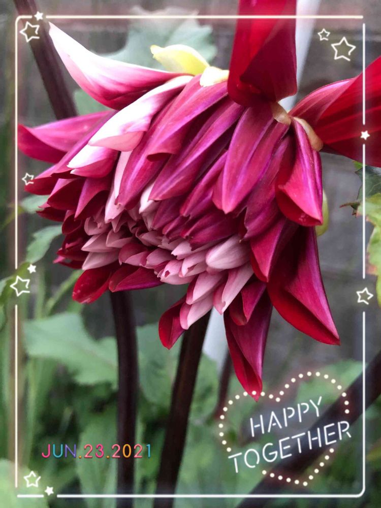 ダリア 黒蝶以来 初めて埋めてた 球根から 立派な 花が咲き始めました💕💕😘