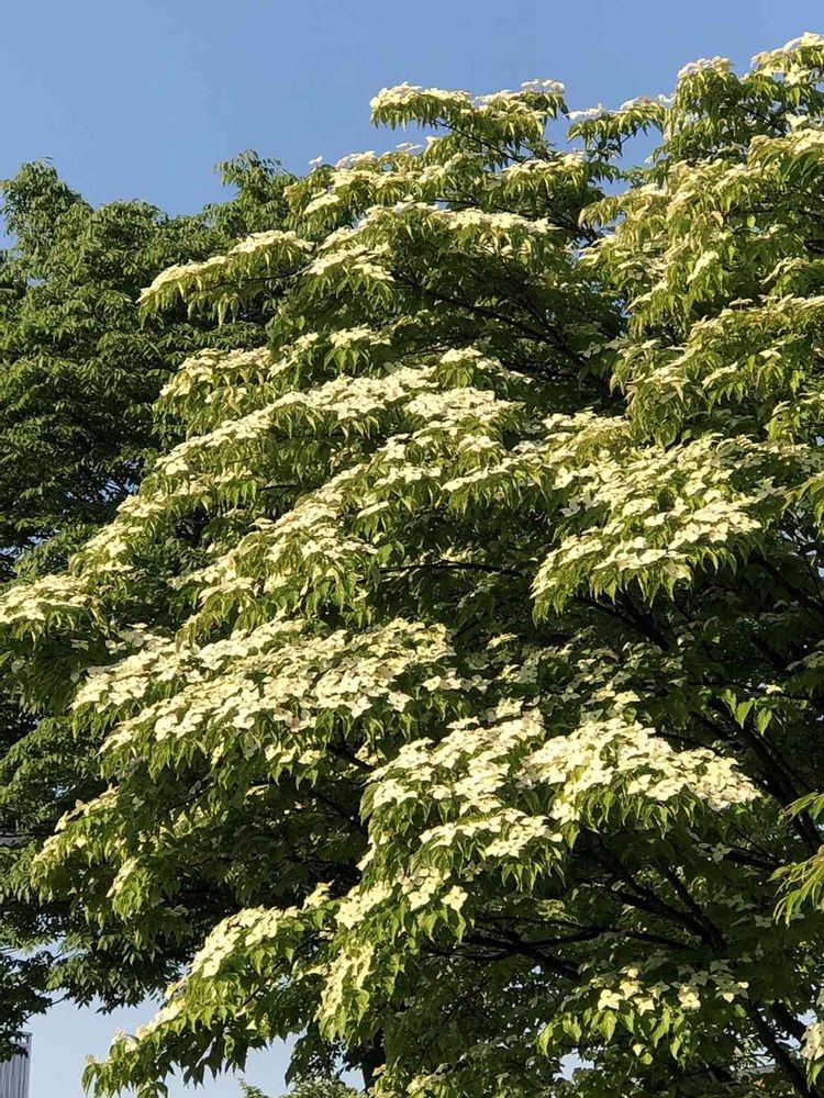 青空に映えてるヤマボウシがきれいです🌼☘️🌼☘️