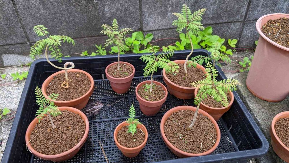 さん お返事大変遅くなりました。お店で見つけたら買ったり、脇芽を剪定したときに挿し木してたら増えました。基本小さく育てたいので盆栽風にしてますがお花も咲かせてみたいので一本だけ大きく育ててます。最初はみんな同じくらいの大きさでしたが鉢を大きくしている苗だけ大きくなってます。